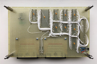 The back side of the board. Same construction principle as the other MC3 boards. I'm beginning to like this soldered wire-wrap technique even more. It's pretty quick, solid and relatively easy to make changes since wires can be re-used instead of scrapped as often happen with regular wire-wrapping.