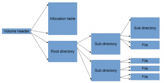 That is really the only data structures used in the file system. The actual sizes and positions of the object on the storage medium is determined by the formatting software and the kernel itself. Directories can be created in various sizes. The standard size I have selected is 8 sectors. That gives 8*8 = 64 files in one directory but the only technical limit is the storage space. It is possible to, for example, create a directory that uses up all the storage space but that would be pretty useless. Very large directories will also have a quite big performance impact.
