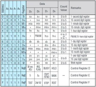 The first 13 registers of the RTC72421 is common for most 4-bit RTC chips. From other vendors as well. There is however no century register so that will have to be handled separately.